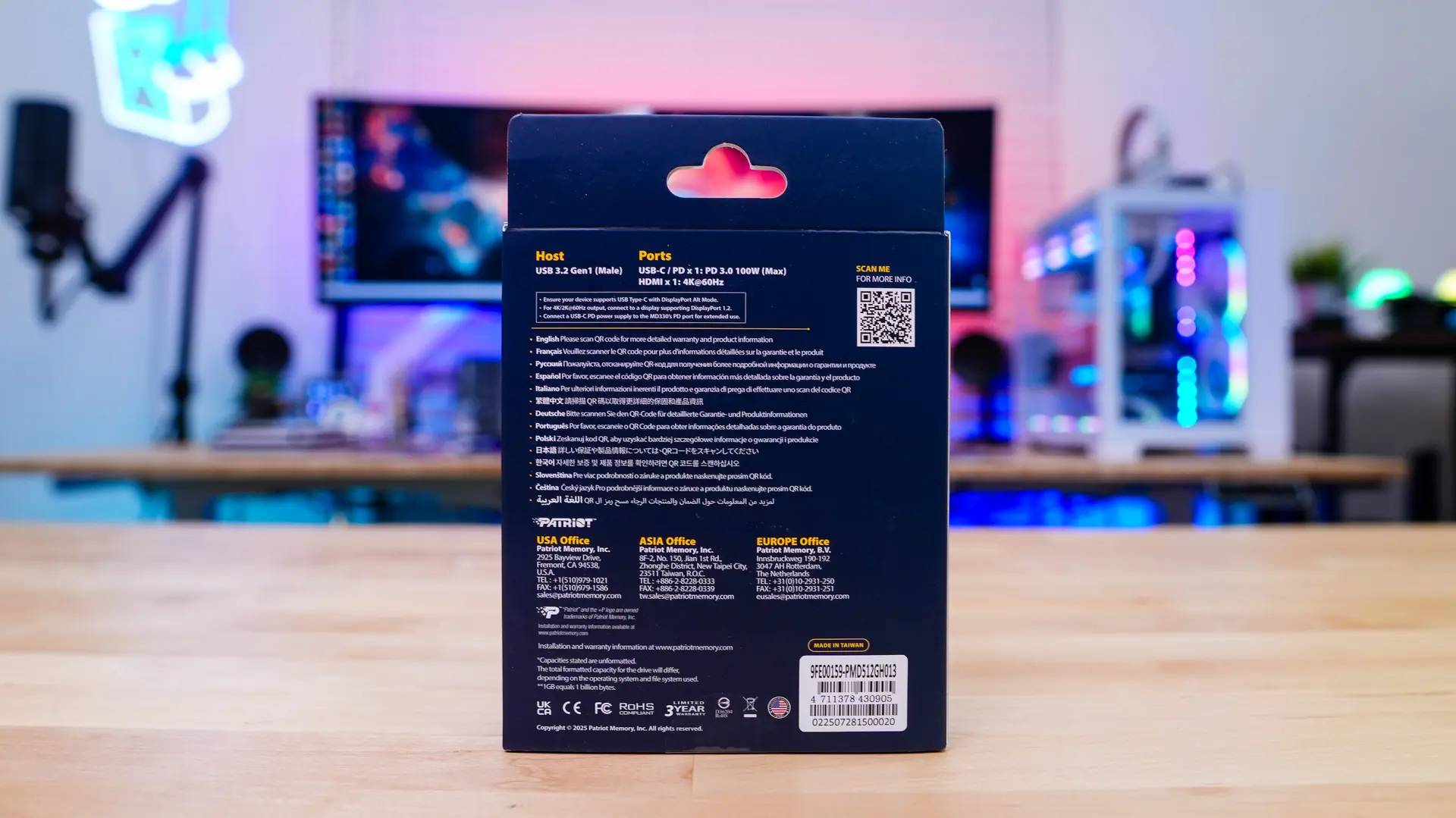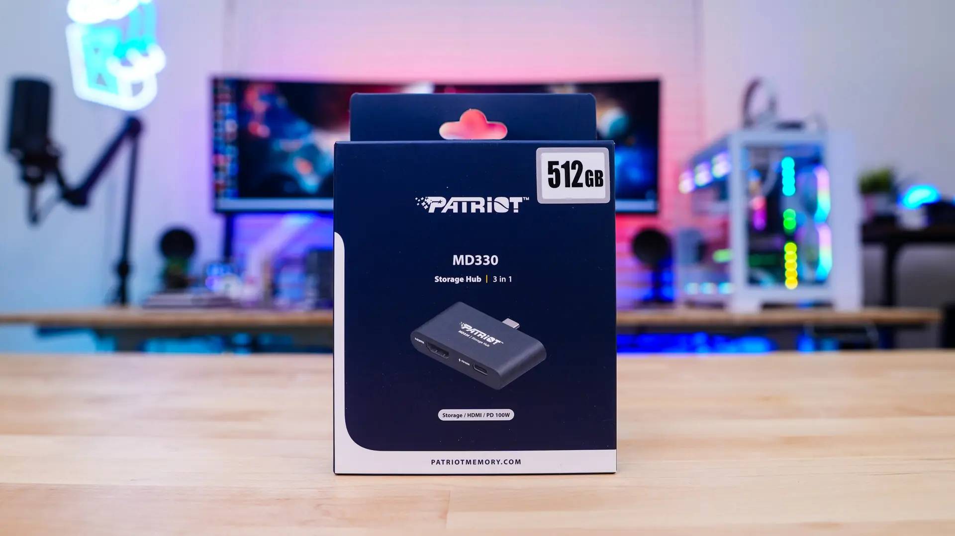 MD330 Depolama Hub, önünde bir resim bulunan standart bir perakende kutusunda geliyor ve 512GB kapasiteli versiyona sahip olduğumuzu belirtiyor. Patriot, Depolama Hub'ı 128GB, 256GB, 512GB ve 1TB versiyonlarında sunuyor.