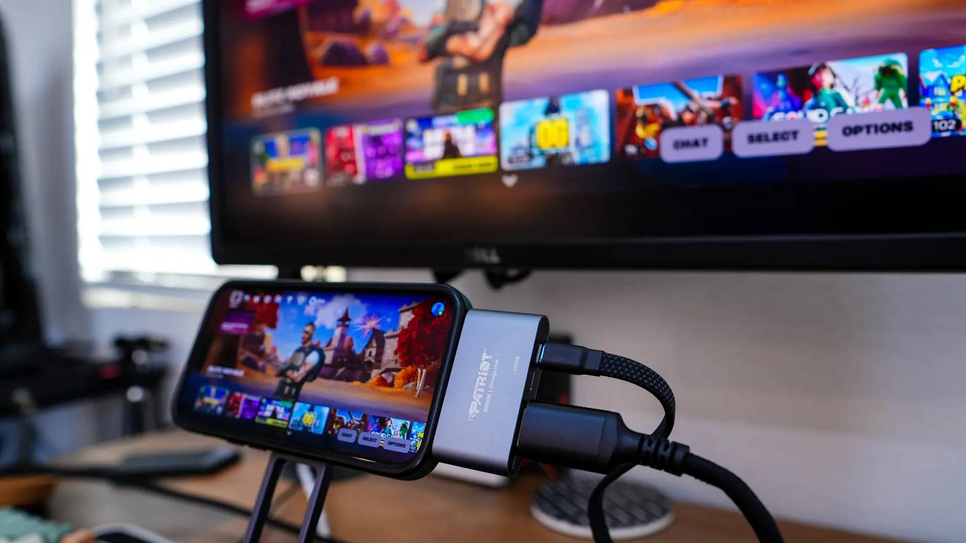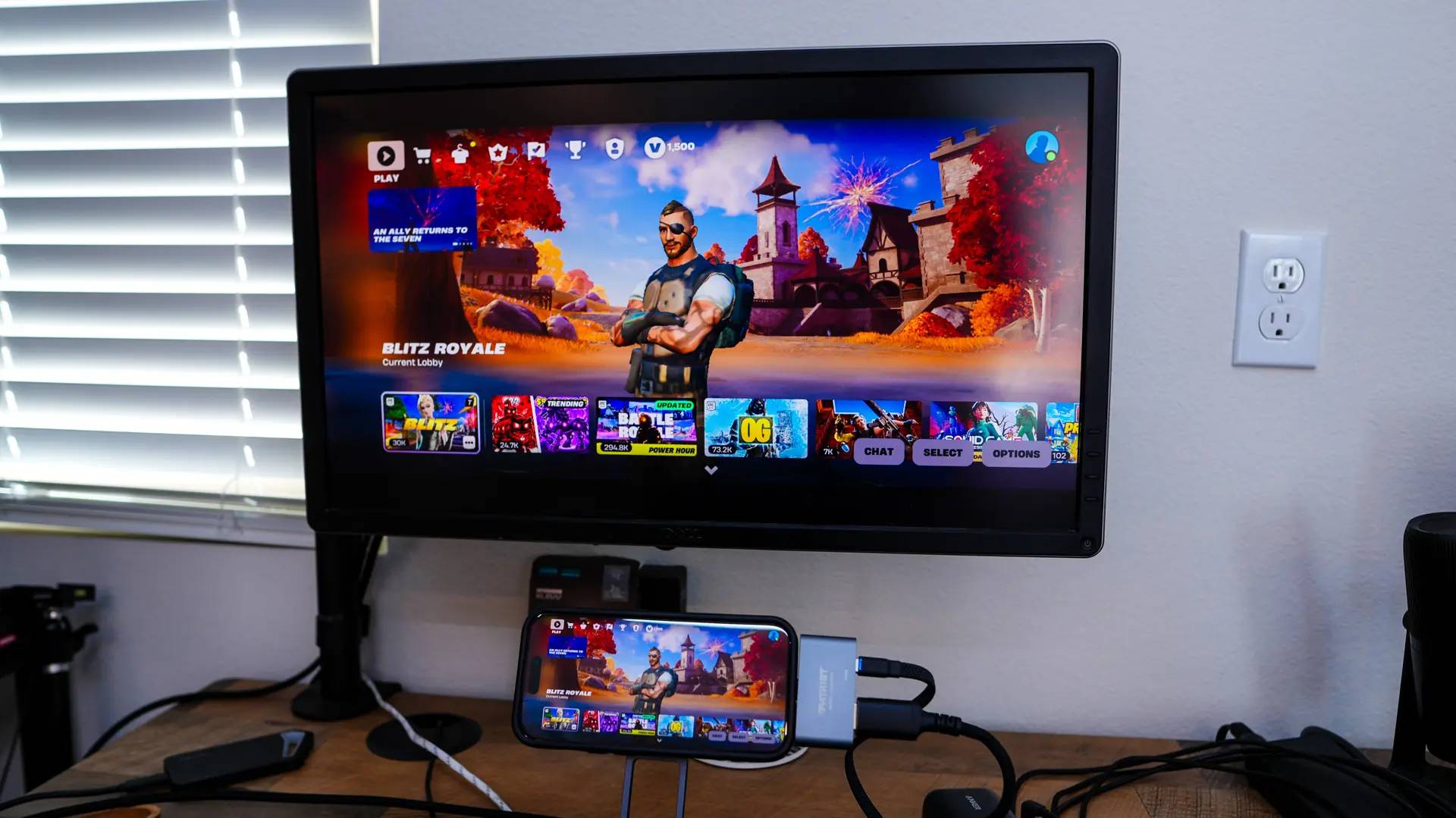 İlk testim için iPhone 15 Pro'mu kullanacağım. Çoğu insanın MD330'u mobil cihazları için alacağını düşündüğüm için bu mükemmel bir test. MD330'u bir monitöre ve güç kaynağına bağladım. Böylece telefonumu şarj ederken aynı anda büyük bir ekranda oyun oynayabildim. Yine, herhangi bir uygulama veya benzeri bir şey gerekmiyordu, sadece çalışıyor.