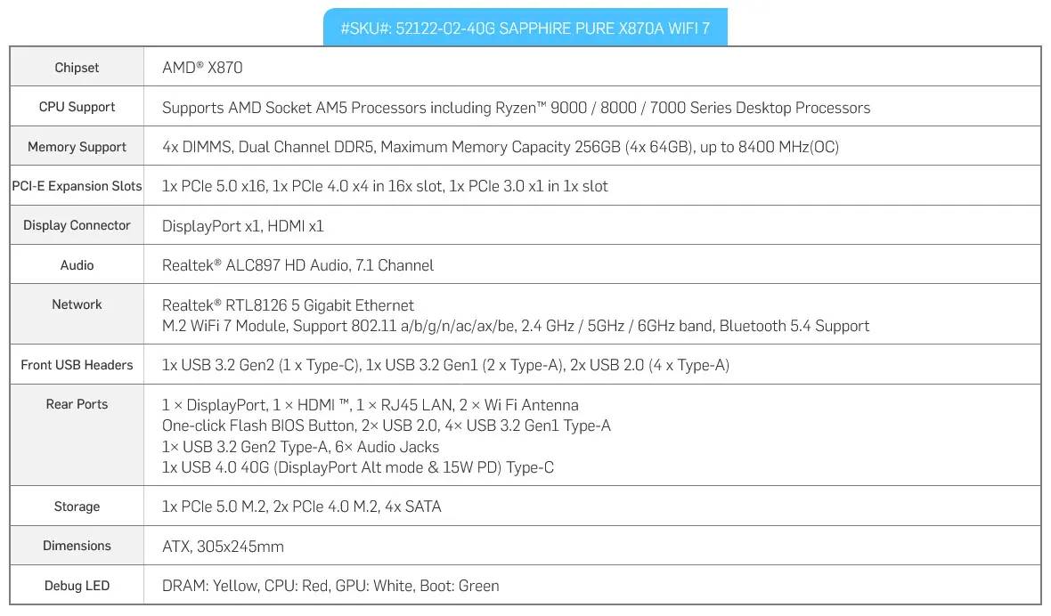SAPPHIRE PURE X870A WIFI 7 anakartı, dünya genelindeki yetkili perakendeciler aracılığıyla şimdi mevcut. 249 USD MSRP ile fiyatlandırılmış olup, yüksek kaliteli anakart pazarında rekabetçi bir seçenek olarak konumlandırılmıştır.
